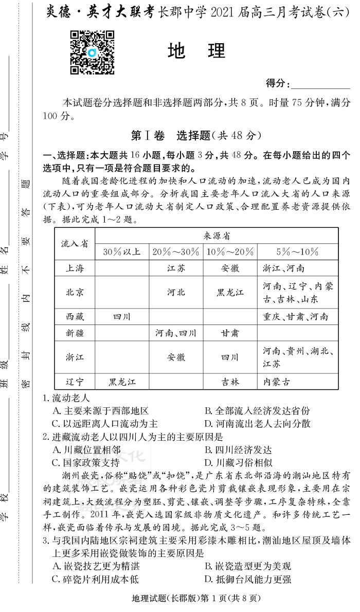 2025名師導學·名校名卷經(jīng)典試題匯編·地理