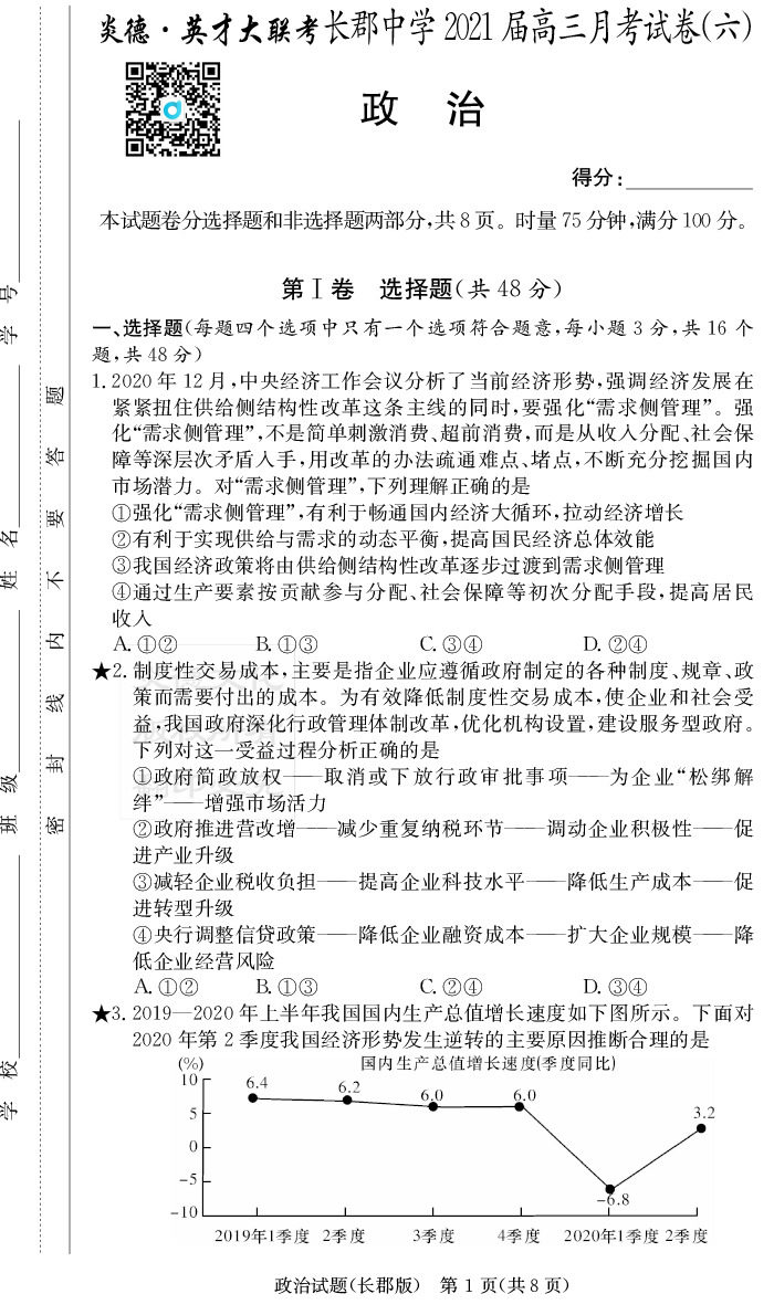 2025名師導學·名校名卷經典試題匯編·政治
