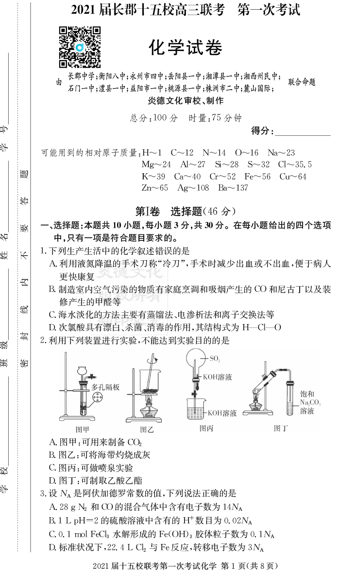 下一篇:【歷史】炎德英才大聯考2021屆長郡中學高三7次月考(十五校聯考一)