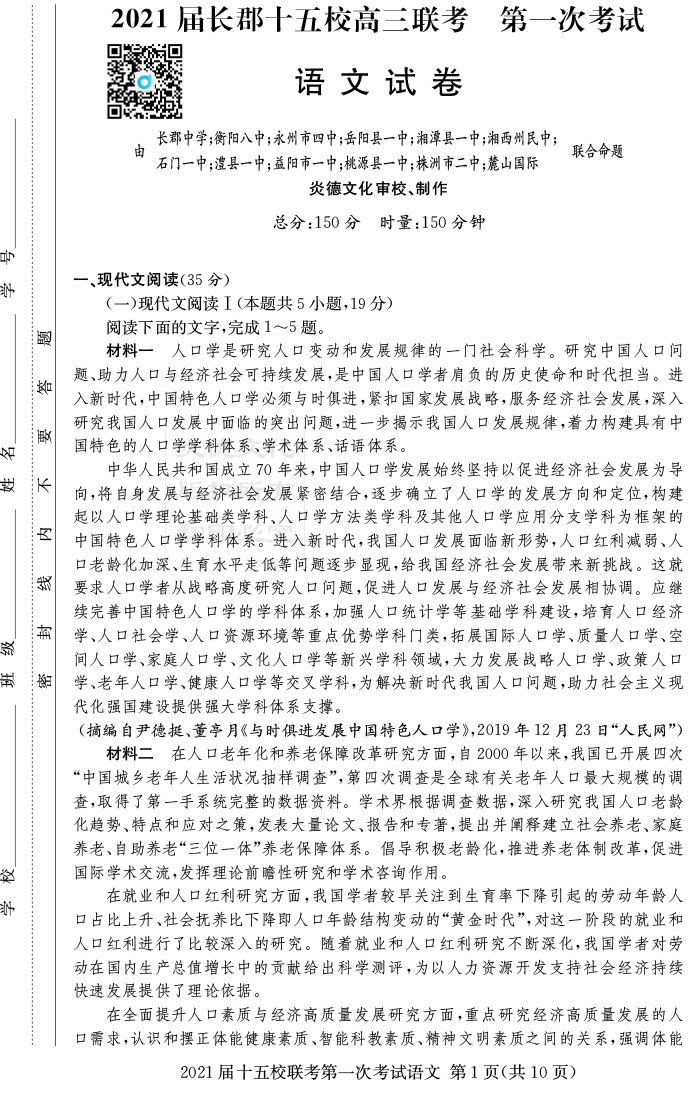 上一篇:【英語】炎德英才大聯考2021屆長郡中學高三7次月考(十五校聯考一)