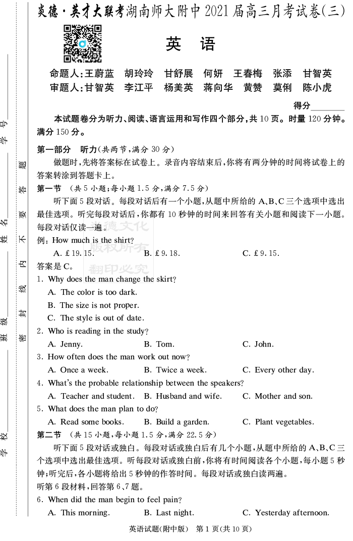 下一篇:【語文】炎德英才大聯考2021屆湖南師大附中高三3次月考