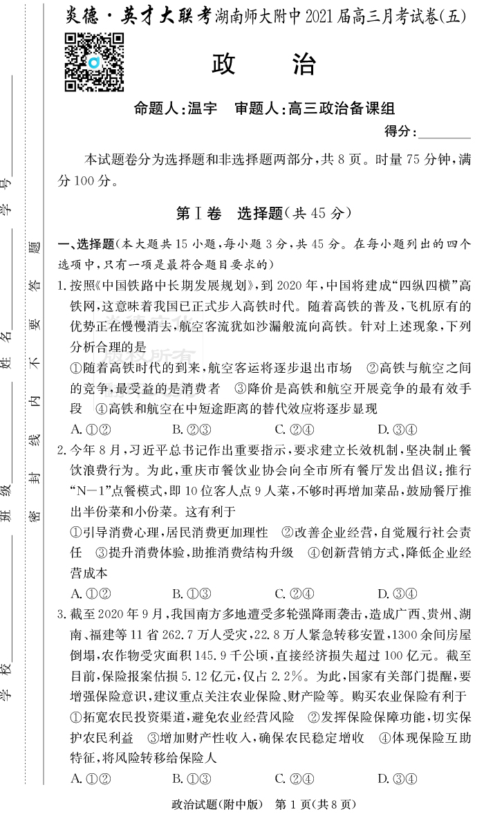上一篇:【語文】炎德英才大聯考2021屆湖南師大附中高三5次月考
