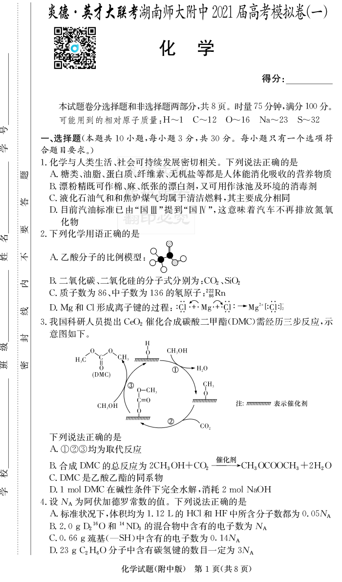 2026名師導學·高考總復習·小題量基礎周周考·化學