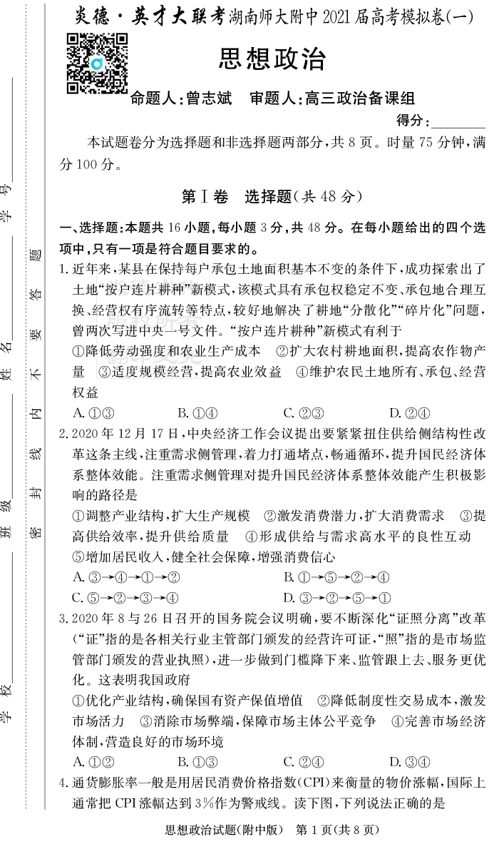2025名師導學·名校名卷經典試題匯編·政治