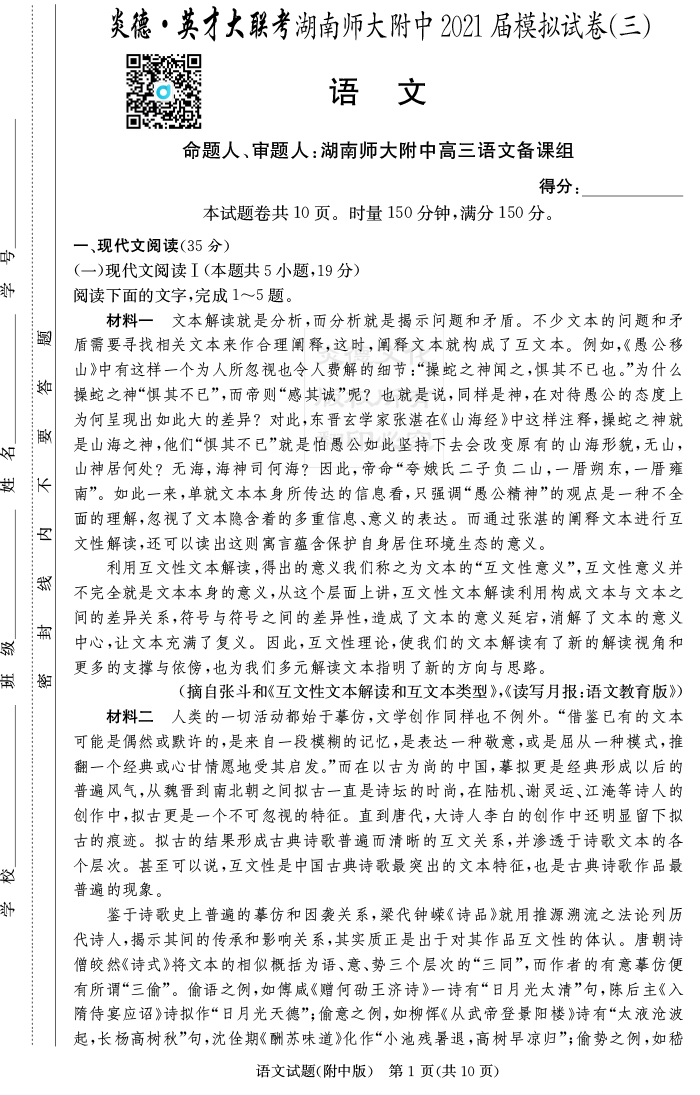 上一篇:【英語】炎德英才大聯考2021屆湖南師大附中高三10次月考(模擬三)