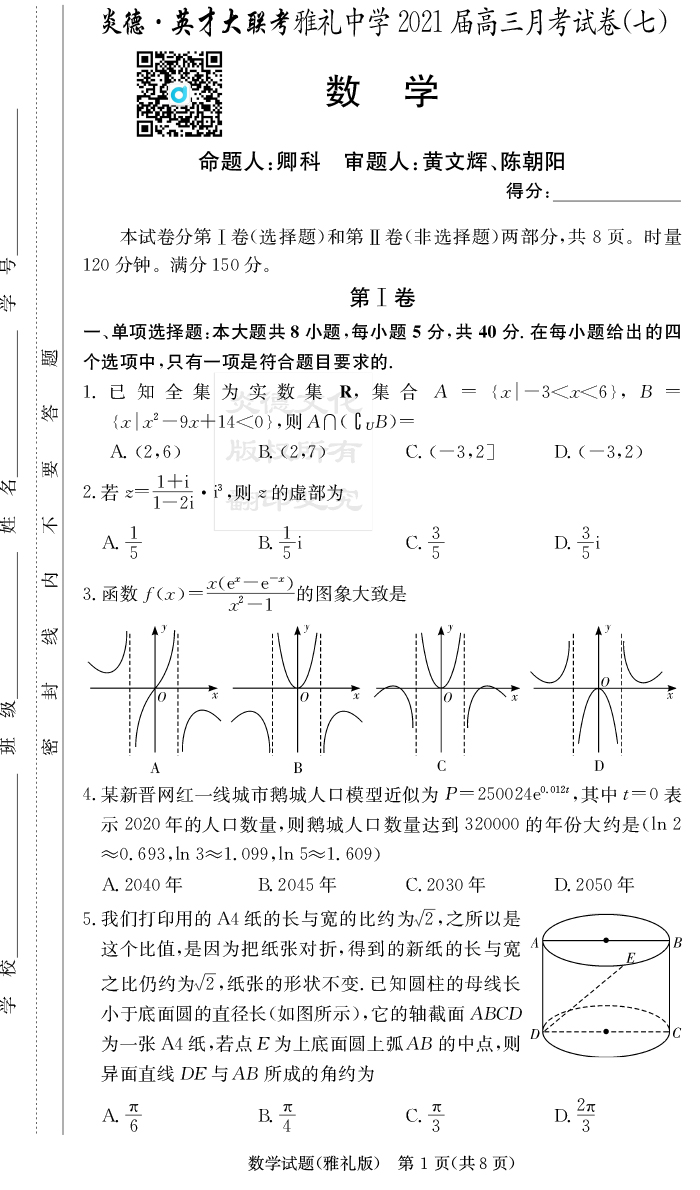 上一篇:【生物】炎德英才大聯考2021屆雅禮中學高三7次月考