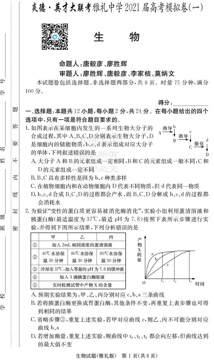 上一篇:【歷史】炎德英才大聯(lián)考2021屆雅禮中學高三9次月考(模擬一)