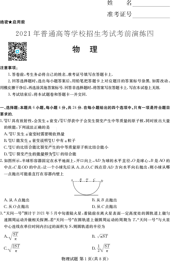 下一篇:【英語】2021年普通高等學校招生全國統一考試考前演練(四)