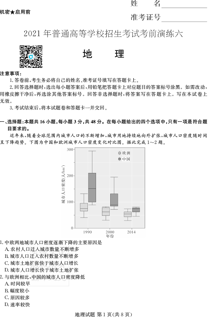 上一篇:【政治】2021年普通高等學校招生全國統一考試考前演練(五)