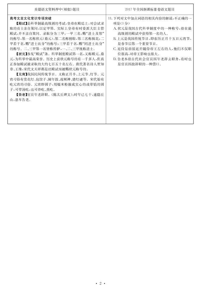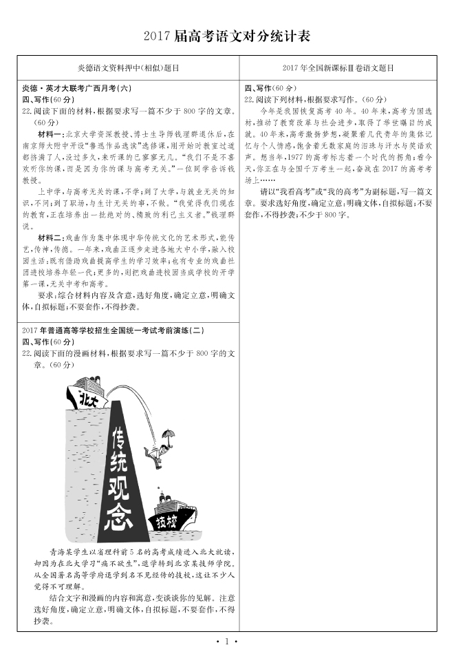 2017高考全國(guó)卷Ⅲ對(duì)分表-語(yǔ)文