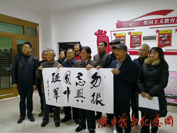 長沙市關工委主任董學生為抗日戰爭圖書館題字(前排左起:唐得之、董學生、何譽軍)