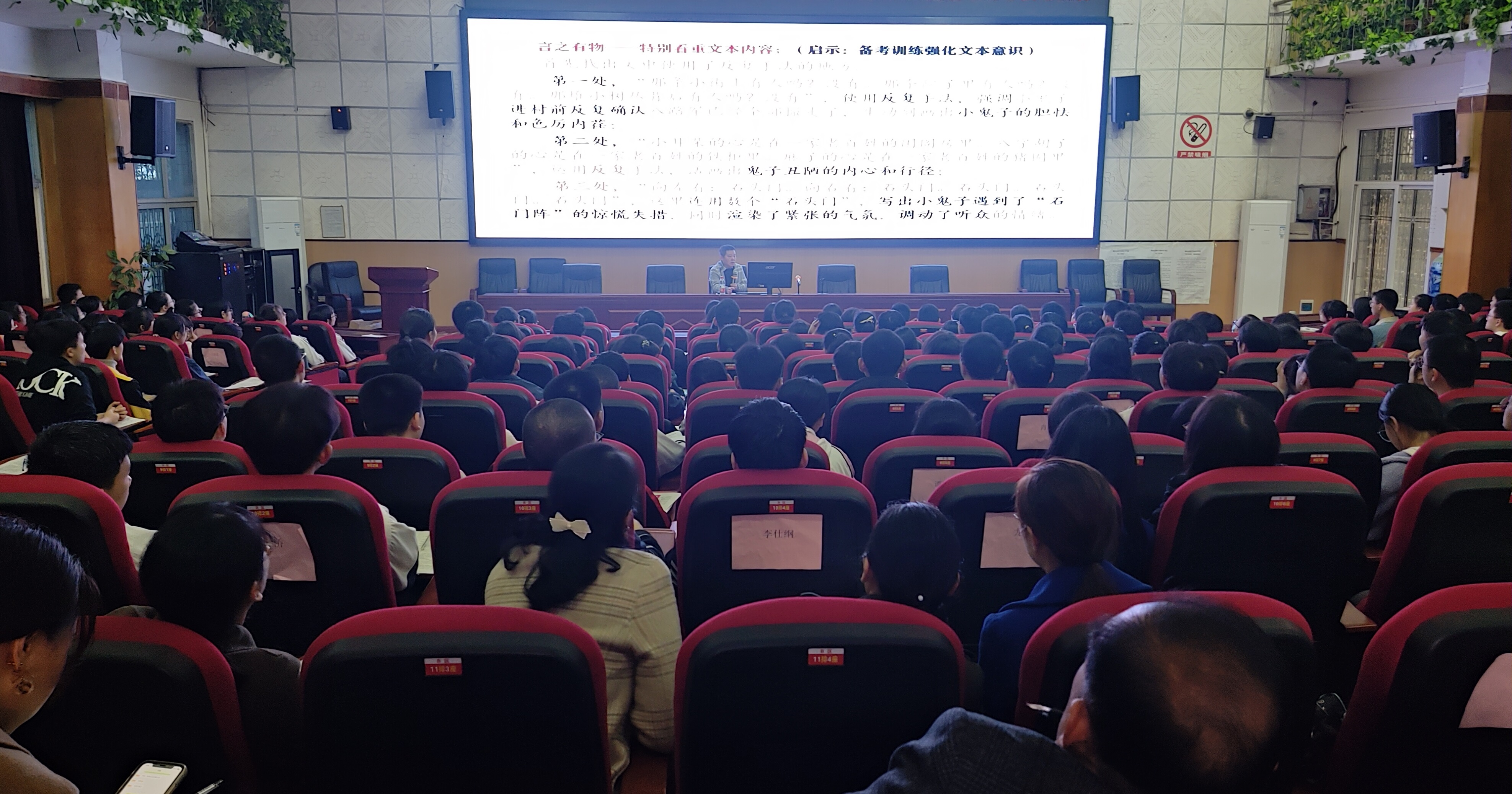 高三年級學生及全體語文老師到場聆聽、學習。
