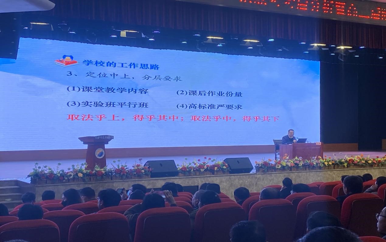 本次會議的主會場設在長郡濱江中學,由長郡中學教務處主任王毅主講,新高考教學管理的應對策略。
