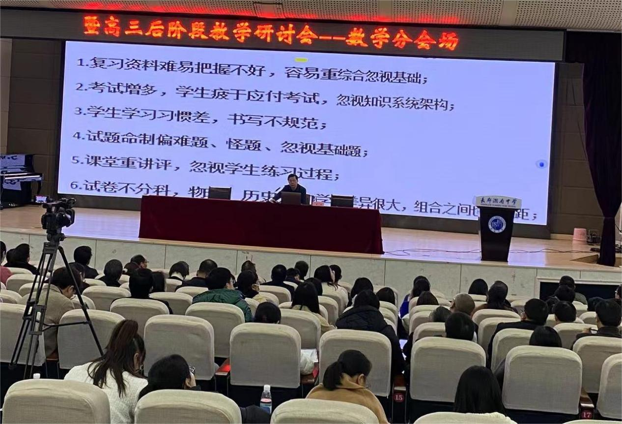 數學學科分會場位于城南的長郡湘府中學逸夫樓,數學研討會由長郡湘府中學教科室主任張作亮主持,來自湖南及江西共400余名高三數學教師參加了此次研討會。