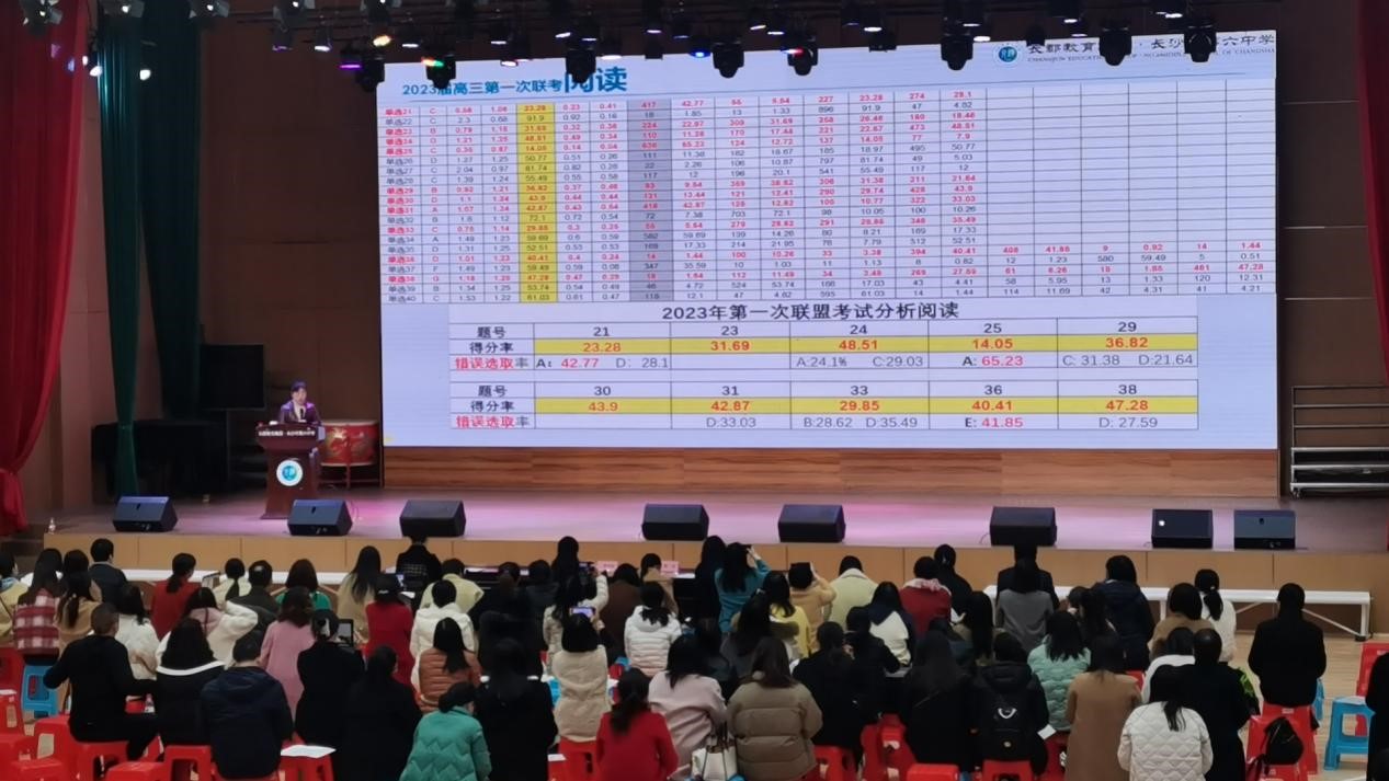 在長郡中學體育館內,來自衡陽市八中的李自生老師對語文學科考后數據進行了詳細分析。