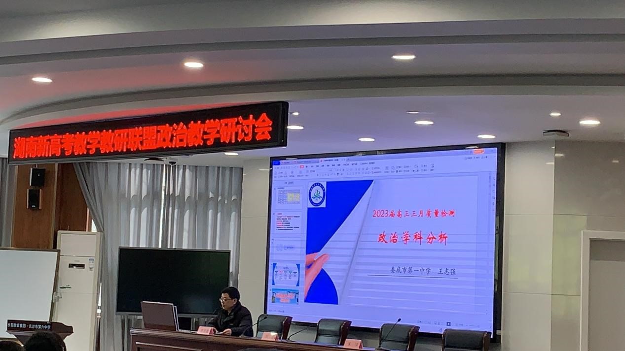 長沙市第六中學的另一政治分會場上,婁底市一中王志強、長沙市六中朱球以及長郡中學劉芝三位骨干級老師對政治學科進行了多輪次的分解,令在場老師收獲頗豐。