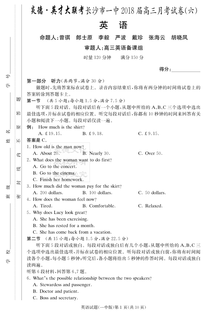 | 資源類別: | 名校月考 | |